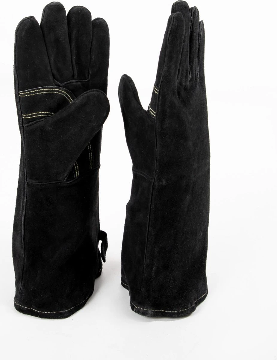 Deze mooie zwarte BBQ handschoenen zorgen ervoor dat het enige wat brandt jouw eten op de barbecue is, en niet jouw handen! De BBQ wanten kunnen echt niet ontbreken aan je BBQ accesoires. Doordat de BBQ handschoenen hittebestendig zijn, krijg je nooit meer vervelende brandwondjes als je je hand net iets te dicht bij het vuur gehouden hebt. Natuurlijk zijn de handschoenen handig voor te barbecueën, maar je kunt ze ook handig gebruiken voor een kampvuur, iets uit de oven halen of voor de vuurhaard. Super veelzijdig dus!